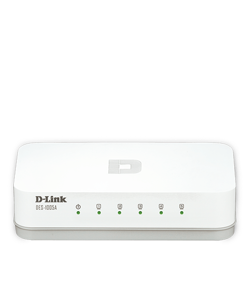 The DES-1005A 5-Port 10/100 Switch allows you to quickly set up a fast, reliable, and efficient wired network in your home or office. The DES-1005A is an unmanaged 10/100Mbps switch designed to enhance small workgroup performance while providing a high level of flexibility. Powerful yet easy to use, this device allows users to simply plug any port to either a 10Mbps or 100Mbps network to multiply bandwidths, boost response time and satisfy heavy load demands. Connect the DES-1005A to multiple computers to share files and folders, or connect it to a router to share an Internet connection.