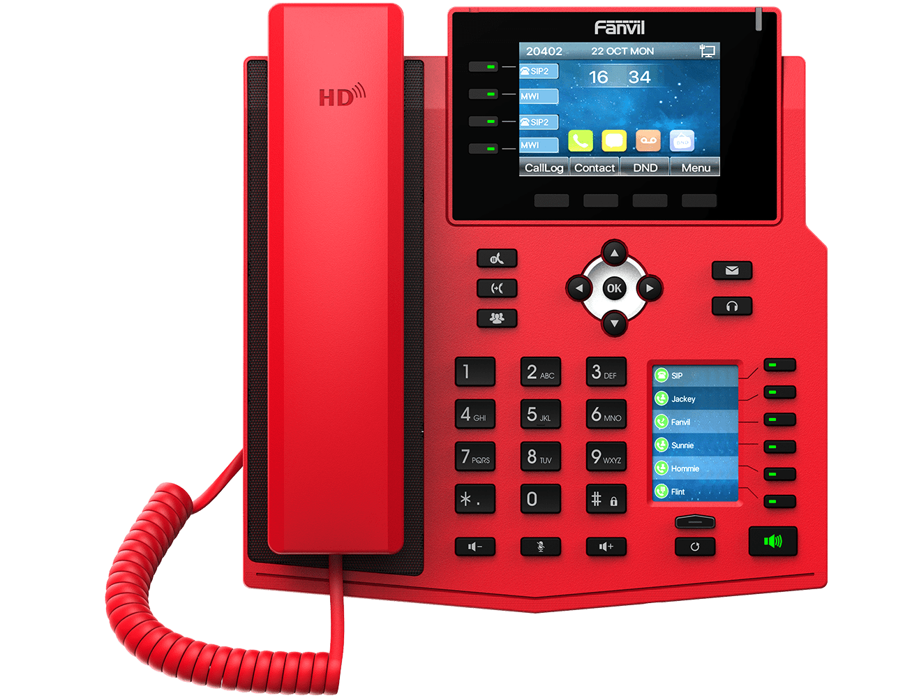 Fanvil X5U-R Phone has been specially designed for deployment scenarios where phones need to stand out in case of an emergency. The Fanvil X5U- R is a stylish and attention-calling device that won’t be overlooked if hospitals, fire stations, and government agencies have an emergency where making a call is imperative. The Fanvil X5U- R is a 16-line mid-level IP Phone that features two screens, one large 3.5-inch screen, and a second 2.4-inch side color screen for added convenience when using DSS keys. The X5U has all the features a professional user needs such as great audio quality with a Harman speaker, built-in Bluetooth for connecting Bluetooth headsets, and the option to add a Wi-Fi dongle.